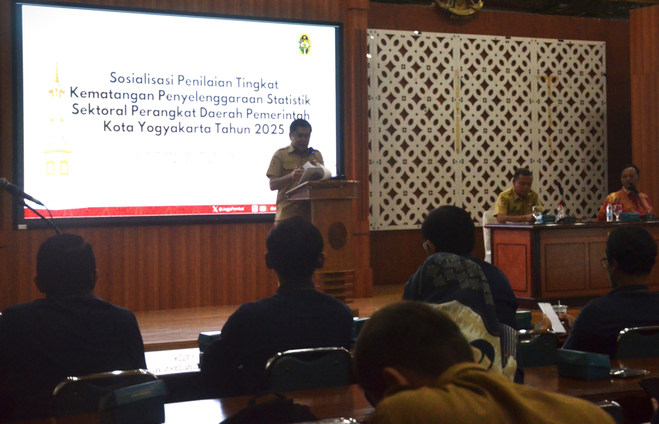 Umbulharjo, suarapasar.com — Pemerintah Kota Yogyakarta menegaskan komitmennya untuk meningkatkan kualitas tata kelola data melalui penguatan statistik sektoral di seluruh perangkat daerah. Hal ini ditegaskan dalam kegiatan Sosialisasi Penilaian Tingkat Kematangan Penyelenggaraan Statistik Sektoral Perangkat Daerah Tahun 2025 yang dibuka oleh Asisten Administrasi Umum Sekretariat Daerah Kota Yogyakarta, Dedi Budiono, di Balai Kota pada Senin (7/7/2025).